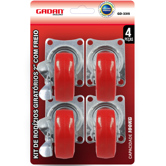 RODAS / RODIZIO 4UN. REFORÇADO 2" C/ FREIO - GADAN